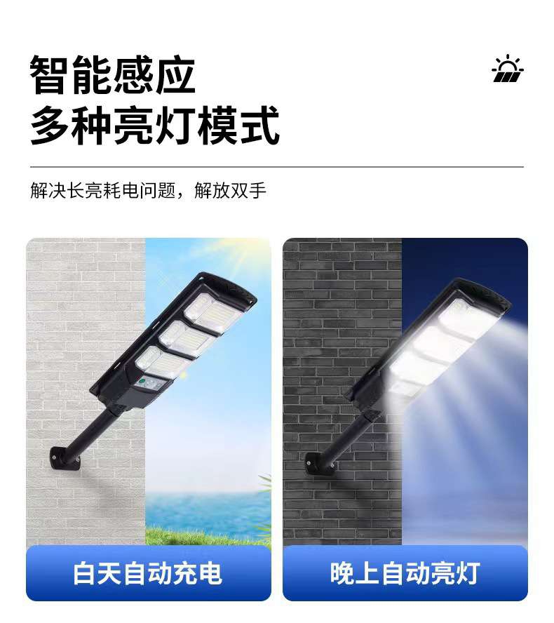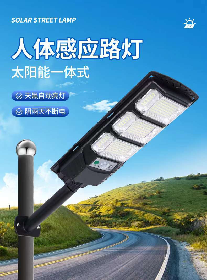 跨境新款一体化太阳能感应路灯头户外道路人体感应照明路灯