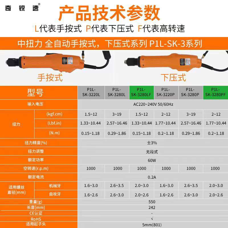 奇力速奇锐速电批SK-3220L/3280L系列