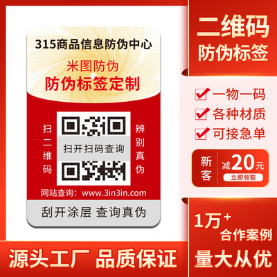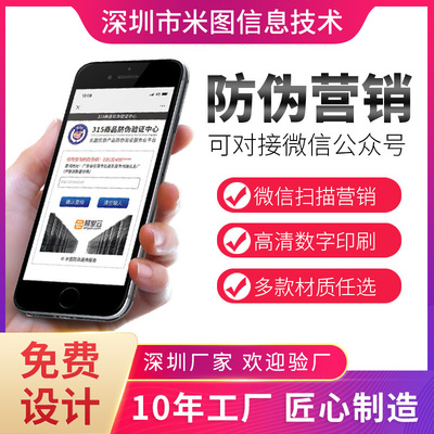 货源类别加工定制:是|货号:MTFW-001|防伪方式:二维码防伪|品牌:米图防伪|适用范围:化妆品、酒水、茶叶、数码、贸易等|印刷形式:数码印刷|材质颜色:铜版纸、全息镭射、易碎纸、透明。