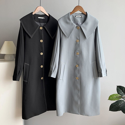橘芷2020秋季娃娃领风衣女中长款韩版黑长袖过膝宽松休闲外套9317 |