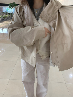 【现货】21春季韩国东大门mayb*baby连帽立领休闲韩货风衣外套女 |