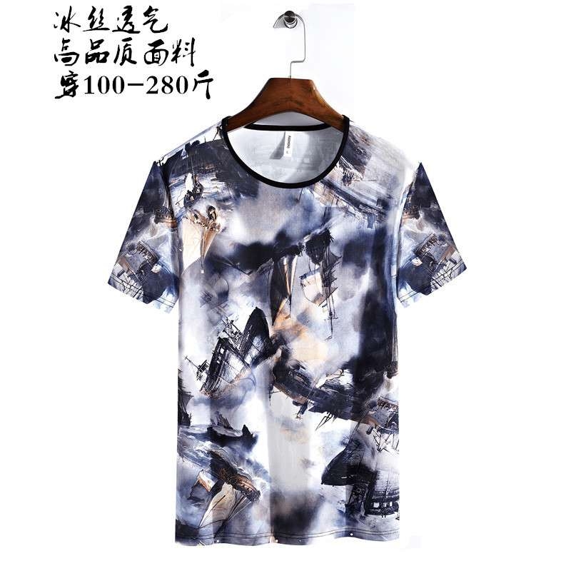 一件代发夏季男士冰丝短袖T恤打底衫修身弹力半袖上衣加大码8XL