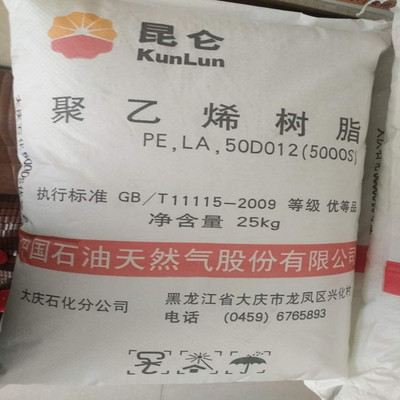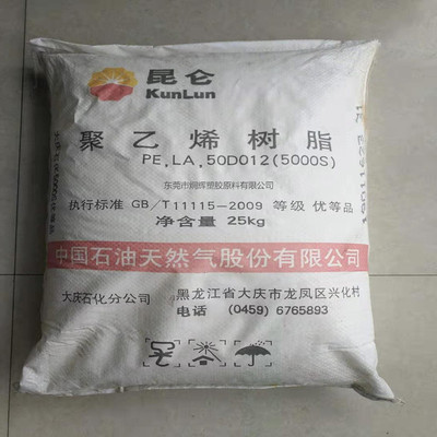 货源类别产地:大庆|品名:大庆石化|是否进口:否|厂家(产地):大庆石化|货号:5000S|牌号:5000S|加工级别:挤出级,拉丝级|特性级别:耐磨,耐低温,高流动|用途级别:通用级|销售方式:品牌经销|品牌:HDPE(高密度聚乙烯)|类型:标准料|产品规格:25KG