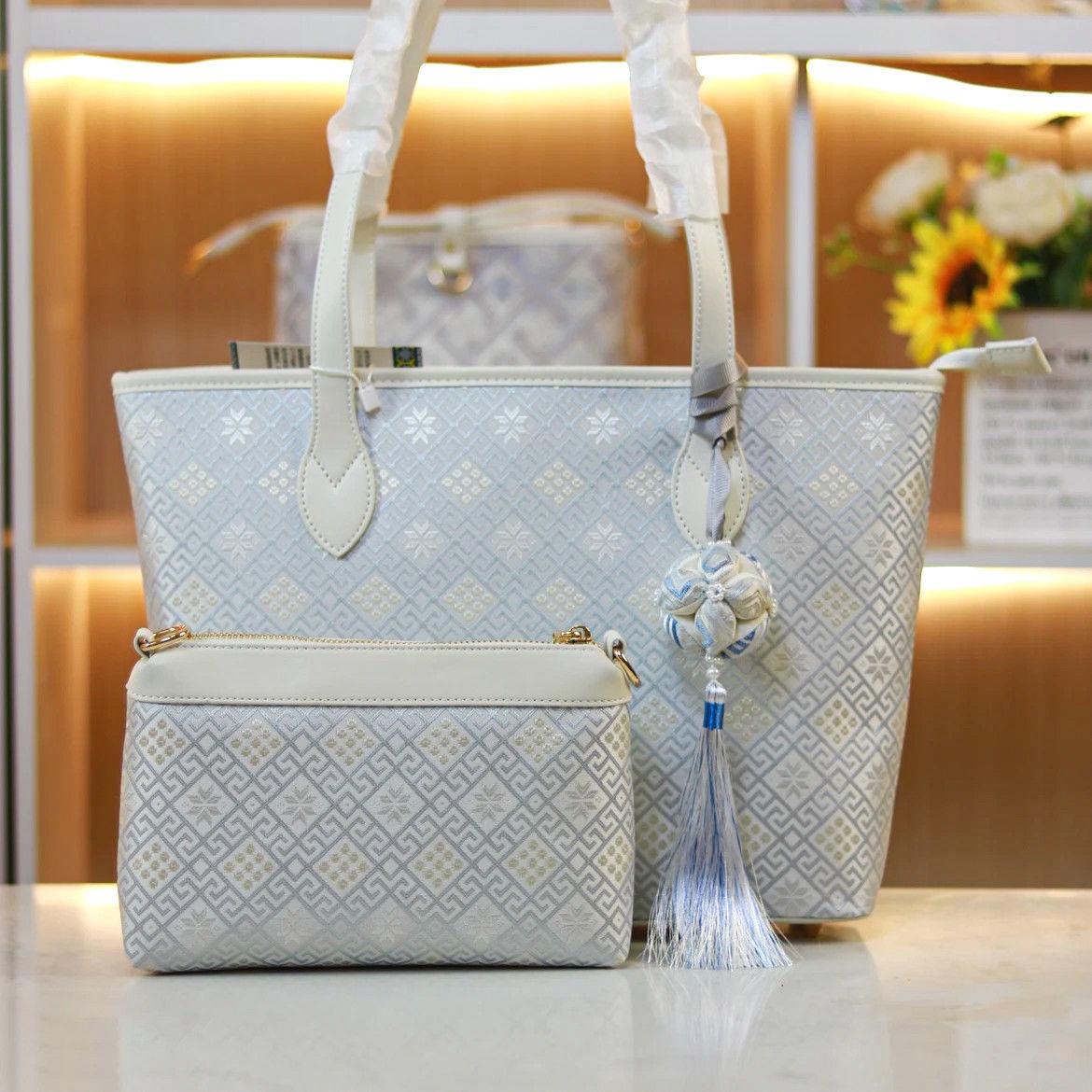 米白包边【几何素白纹】子与母包/有绣球礼盒 259.2元/个 2起批