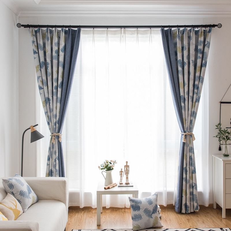 北欧轻奢印花遮光帘 布艺窗帘客厅卧室拼接窗帘 自然垂落地帘定制